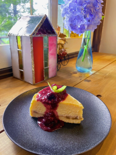 ⾃家製の燻製チーズとミニサラダを添えたプレートです。